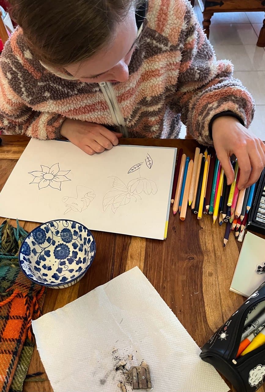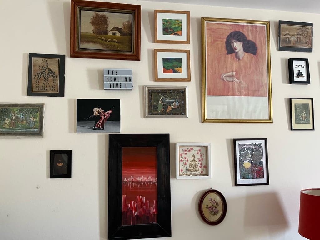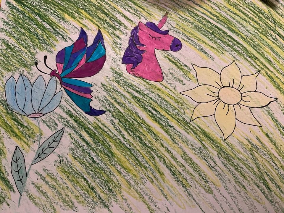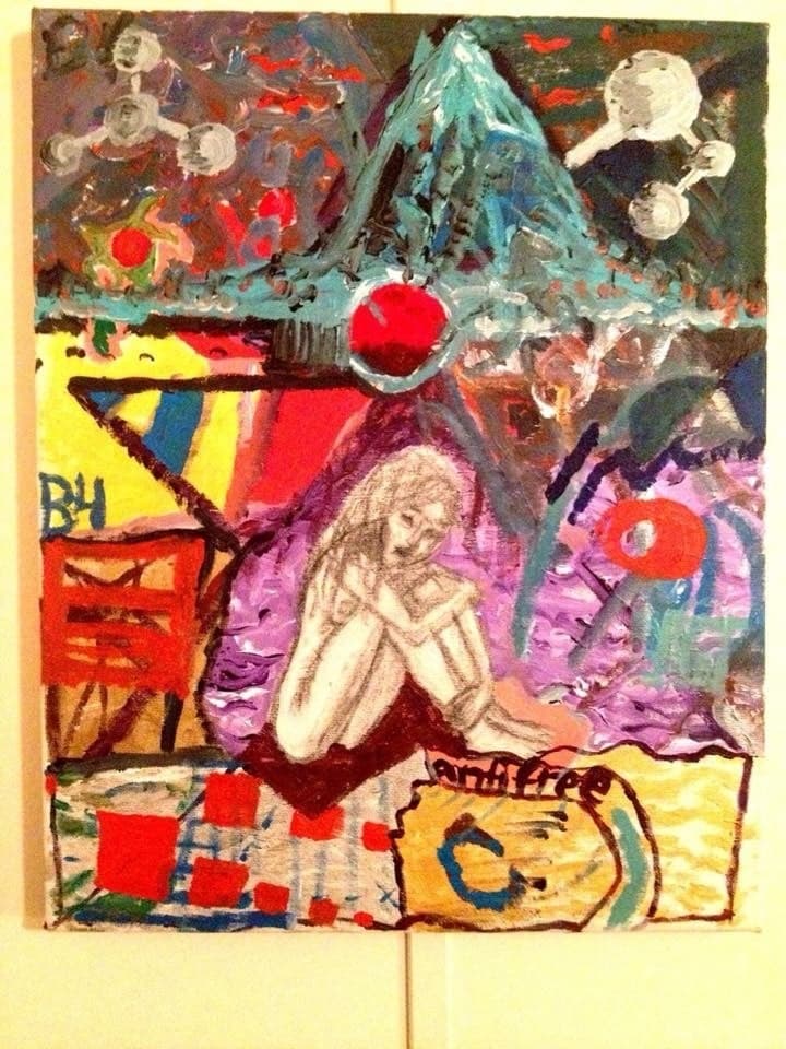 I am a trauma survivor. After my house fire left me homeless and my sister died a week later from an overdose, I had a moment when the pain was just too great. I crumbled to the floor of the motel room I was staying and sobbed and screamed for hours in the fetal position. My friend Jack held my hand and comforted me. The next morning, we painted this together. I drew the crying woman and painted purple waves around her. Jack called me “Wavy Purple” after that, and that became my new identity. The woman who survived. It was a moment of intense spiritual transformation. I became a phoenix, rising from the ashes, newly empowered and ready for the next chapter of my life. I never looked back.